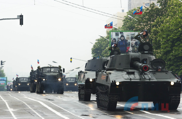В Луганске парад прошел на Театральной площади. Проехала как раритетная техника времен Второй мировой войны, так и современная российская. Так, были показаны танки Т-72, БМП-2, БТР-80, САУ "Гвоздика", гаубицы "Мста-Б", РСЗО "Град", ЗРК "Стрела-10" и прочее.