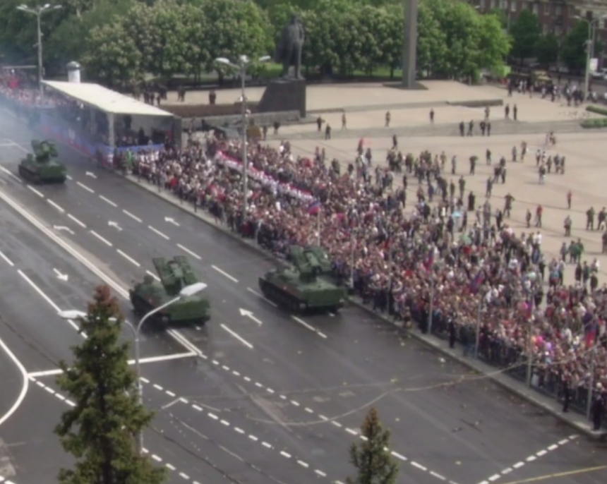 Так, в Донецке по центральной улице Артема прошли 1,5 тысячи "ДНРцев", а также около 60 единиц техники, в том числе и времен Второй мировой войны (РСЗО "Катюша", САУ Су-100, грузовик ГАЗ-АА "Полуторка"). Однако были там и более современные российские образцы: танки Т-64 и Т-72, БМП, РСЗО "Град" и многое другое.
