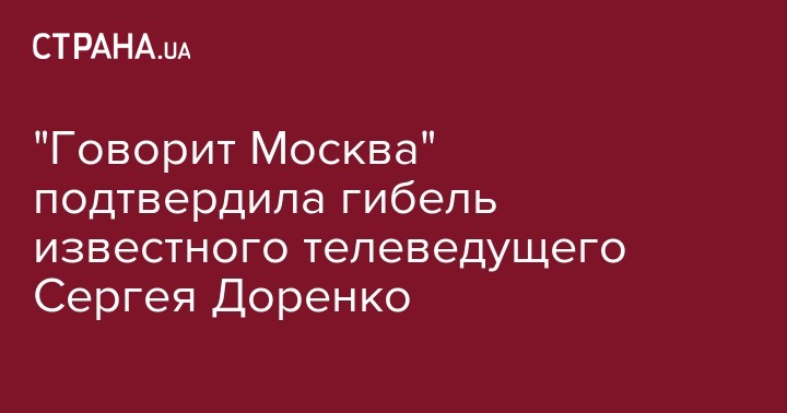 "Главный редактор "Говорит Москва" Сергей Доренко погиб в Москве. Радиостанция подтверждает эту информацию", — уточняется в заявлении.
