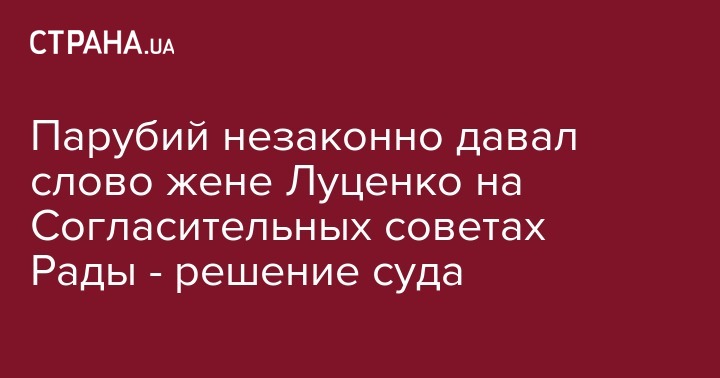 Окружной административный суд Киева признал противоправными действия спикера Верховной Рады Андрея Парубия по предоставлению представителю президента Ирине Луценко (нардеп от БПП и жена главы ГПУ Юрия Луценко) слова для выступления на заседаниях Согласительного совета депутатских фракций и групп в период с 5 февраля 2018г по 8 апреля 2019 г. Об этом сообщается на сайте Окружного админсуда Киева.