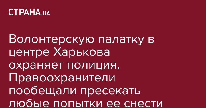 Полиция охраняет волонтерскую палатку на площади Свободы в Харькове, которую предписала снести мэрия города. Об этом на своей странице в Facebook написал нардеп Мустафа Найем.