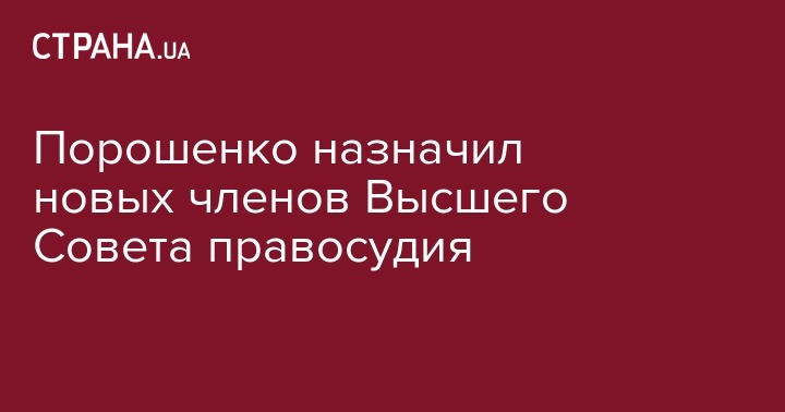 Действующий глава Украины Петр Порошенко в понедельник, 13 мая, подписал указы №217/2019 и№218/2019, назначив членов Высшего Совета правосудия. Указы опубликованы на сайте президента.