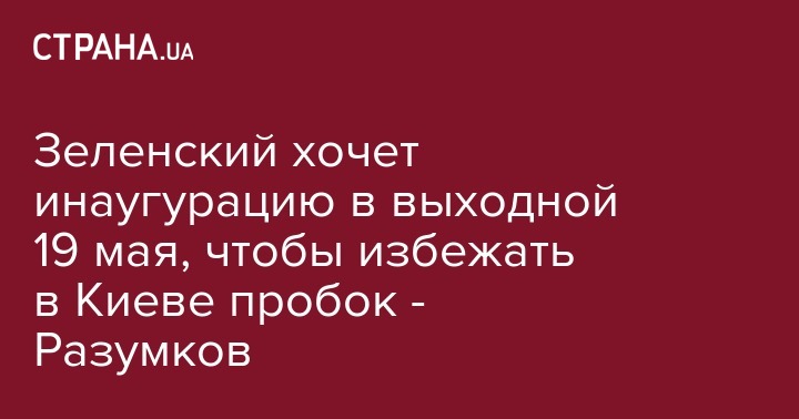 Зеленский хочет инаугурацию в выходной 19 мая, чтобы избежать в Киеве пробок - Разумков