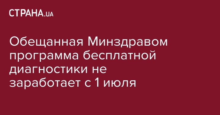 Обещанная Минздравом программа бесплатной диагностики не заработает с 1 июля