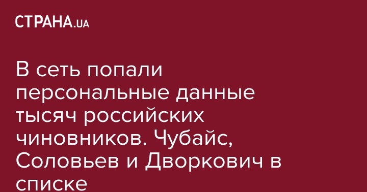 По словам Бегтина, в сеть попали персональные данные бывшего вице-премьера Аркадия Дворковича, телеведущего Владимира Соловьева, губернатора Ивановской области Станислава Воскресенского, председателя правления госкорпорации "Роснано" Анатолия Чубайса и других высокопоставленных лиц.
