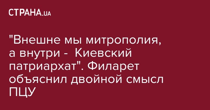 "Наша задача – сберечь Киевский патриархат. Но только в Украине пока что... Для внешнего мира мы сегодня признанная Вселенским патриархом Киевская митрополия. Но мы не удовлетворены этим. Для нас цель – признание Киевского патриархата… Сегодня она внешне Киевская митрополия, а внутри – Киевский патриархат… 30 лет боролись за создание Киевского патриархата, а теперь хотим отказаться. Поэтому будущее за Киевским патриархатом в Украине. Потому что этого требует существование независимой украинской державы…", - сказал Филарет.