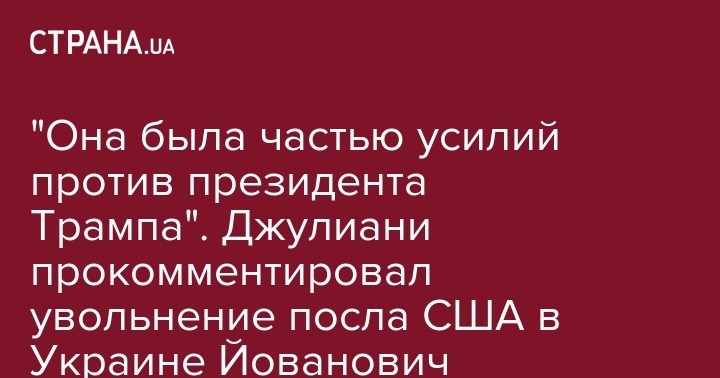 "Она была частью усилий против президента Трампа". Джулиани прокомментировал увольнение посла США в Украине Йованович