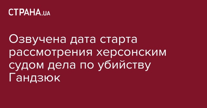 Дело об убийстве активистки Екатерины Гандзюк начнут рассматривать в Херсонском городском суде 27 мая в 11:00. Об этом сообщается на сайте Судебной власти Украины.