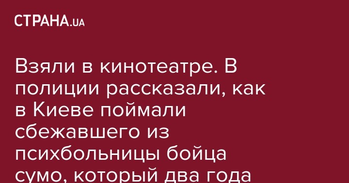 В полиции сообщили подробности задержания бежавшего из киевского психиатрического учреждения закрытого типа борца сумо, который в 2017 году застрелил байкера и после этого был отправлен на принудительное лечение. Как выяснилось, Дмитрия Слепченко задержали в Глевахе во время просмотра фильма в кинотеатре. Об этом на своей странице в соцсети написал замглавы Нацполиции Украины Вячеслав Аброськин.
