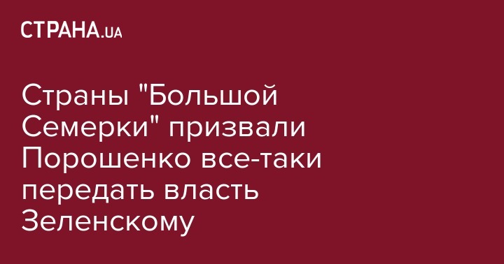 Послы государств G7 встретились с действующим главой Украины Петром Порошенко и призвали его плавно передать власть преемнику Владимиру Зеленскому. Об этом сообщило французское представительство "Большой семерки" в Твиттере.
