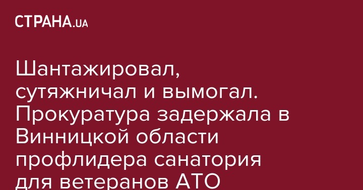 В Винницкой области военная прокуратура задержала профсоюзного лидера санатория для участников АТО. Профлидер шантажировал руководство санатория и вымогал деньги. Об этом заявили в пресс-службе прокуратуры, как передает "Интерфакс-Украина"