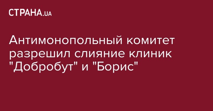 Антимонопольный комитет Украины (АМКУ) одобрил слияние клиник "Добробут" и "Борис", сообщается на сайте ведомства.