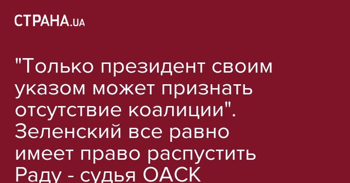 "Только президент своим указом может признать отсутствие коалиции". Зеленский все равно имеет право распустить Раду - судья ОАСК