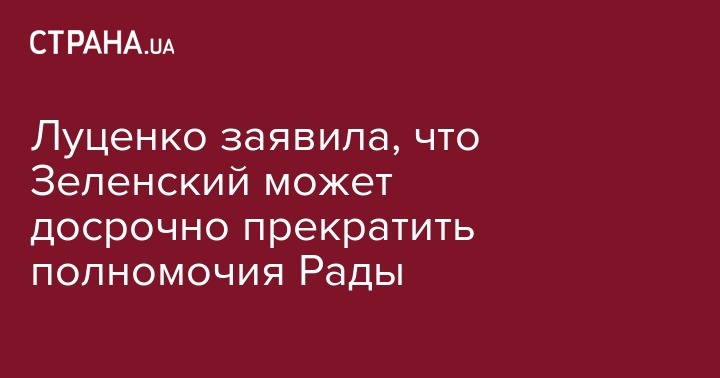 Избранный президентом Владимир Зеленский после инаугурации 20 мая будет иметь возможность досрочно прекратить полномочия Верховной Рады и назначить внеочередные парламентские выборы. Так считает представитель президента Петра Порошенко в Верховной Раде, жена Генпрокурора Ирина Луценко, пишет Интерфакс-Украина.