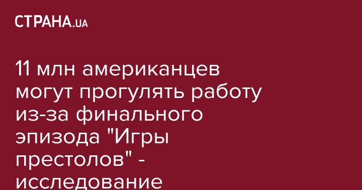Примерно 10,7 млн американцев не пойдут на работу на следующее утро после выхода заключительного эпизода сериала "Игра престолов", который покажут в воскресенье, 19 мая. Данные о потенциальных прогульщиках обнародовал аналитический центр Workforce Institute at Kronos (США), сообщает "Интерфакс".