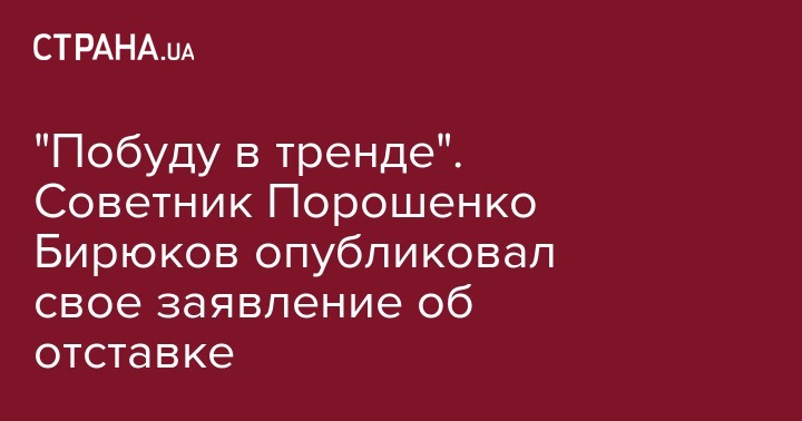 Внештатный советник президента Украины Юрий Бирюков написал заявление об увольнении. Соответствующий документ, датированный 17 мая, он обнародовал на своей странице в Facebook.