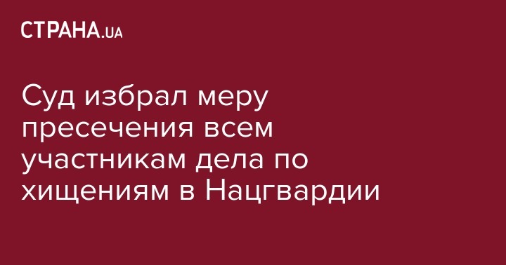 В Киеве Соломенский районный суд избрал меру пресечения всем фигурантам дела о присвоении имущества Национальной гвардии Украины, передает пресс-служба НАБУ.