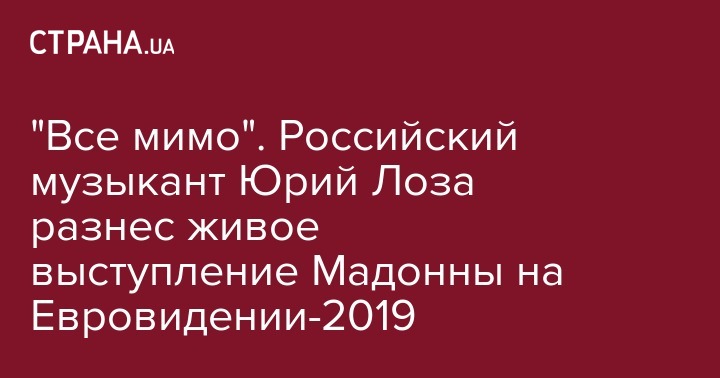 Скандально известный российский музыкант Юрий Лоза, который прославился тем, что критикует мировых звезд, и в этот раз не остался в стороне. В своем Facebook он раскритиковал выступление Мадонны на "Евровидении-2019" в Тель-Авиве.