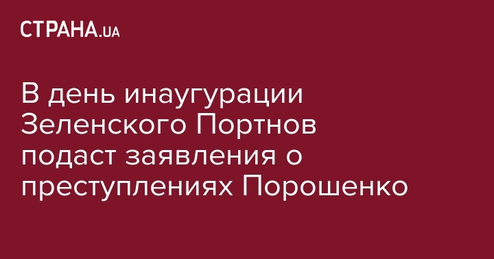 В день инаугурации Зеленского Портнов подаст заявления о преступлениях Порошенко