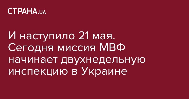 И наступило 21 мая. Сегодня миссия МВФ начинает двухнедельную инспекцию в Украине