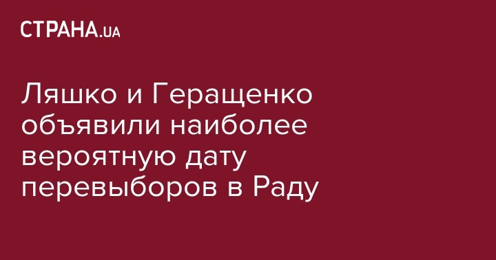 Перевыборы в Верховную Раду Украины состоятся 21 июля. Об этом журналистам сообщил глава Радикальной партии Олег Ляшко после совещания на Банковой лидеров фракций ВР с президентом Украины Владимиром Зеленским.