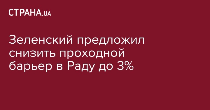 Зеленский предложил снизить проходной барьер в Раду до 3%