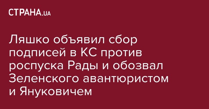 Более того, Олег Ляшко сравнил Зеленского с Януковичем и объявил о том, что его партия начинает сбор подписей под обращением в Конституционный суд с тем, чтобы признать незаконным указ президента о роспуске Верховной Рады.