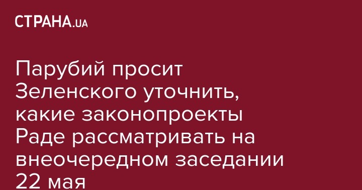 Председатель Верховной Рады Андрей Парубий, который, по просьбе президента Владимира Зеленского, назначил внеочередную сессию парламента на среду, 22 мая, направил главе государства письмо с просьбой уточнить номера законопроектов для рассмотрения.