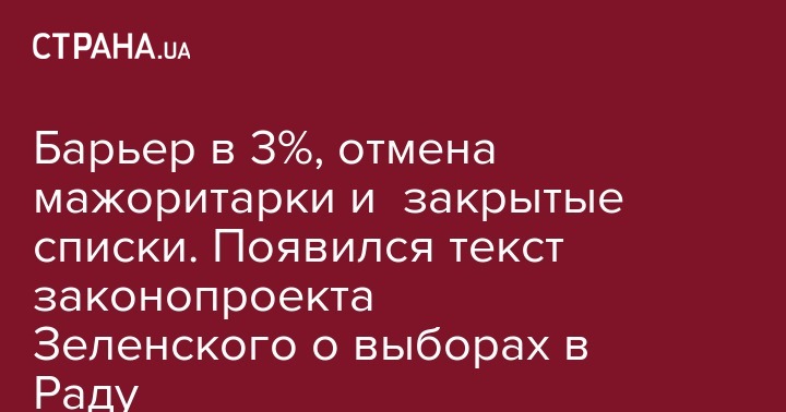 Барьер в 3%, отмена мажоритарки и закрытые списки. Появился текст законопроекта Зеленского о выборах в Раду