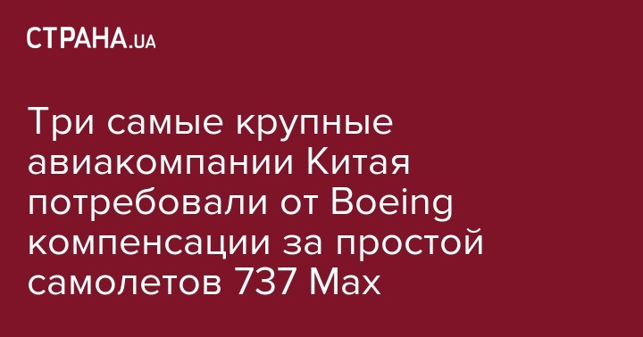 В Китае три крупнейших авиакомпании потребовали у американской Boeing финансовой компенсации за приостановку полетов и задержку доставки самолетов 737 Max. Об этом сообщает агентство Синьхуа.