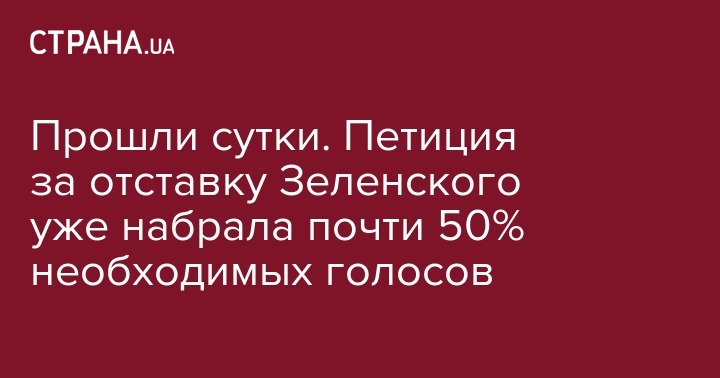 Петиция на сайте главы Украины "За отставку президента Владимира Зеленского", опубликованная 22 мая, за сутки набрала уже 46% от необходимого количества голосов. Соответствующий документ опубликован на официальном сайте президента.