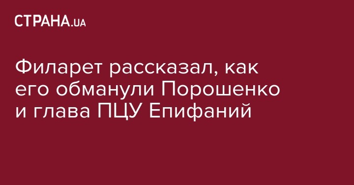 Он рассказал, что оригинал этого документа находится у Константинопольского патриарха Варфоломея. Его передал в Стамбул Порошенко. Филарет резюмировал, что от имевшейся договоренности о руководстве ПЦУ отказался и сам Порошенко, и Епифаний.