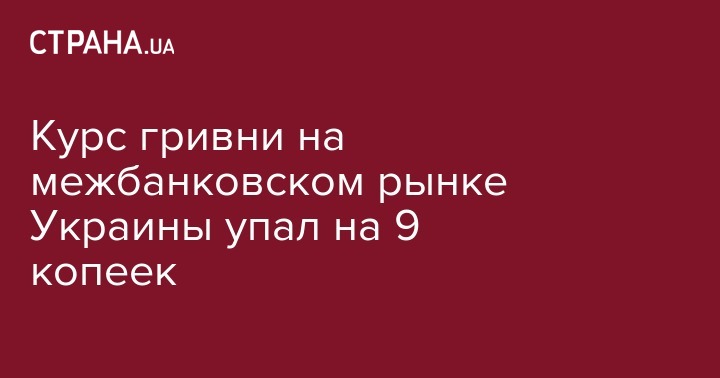 Курс гривни на межбанковском рынке Украины упал на 9 копеек