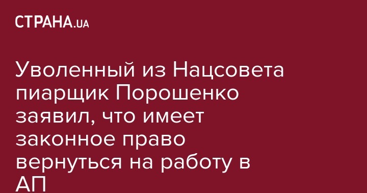 Уволенный из Нацсовета пиарщик Порошенко заявил, что имеет законное право вернуться на работу в АП
