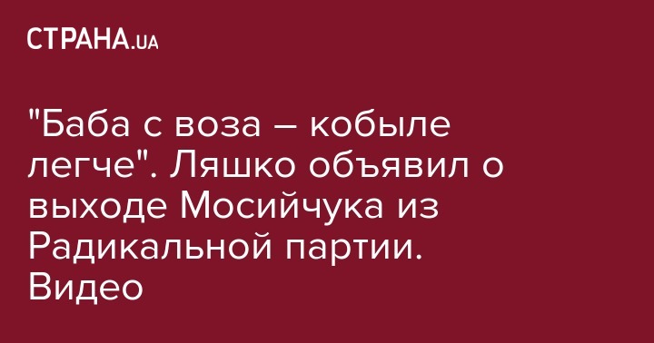 "Сегодня утром у меня был разговор с Игорем Мосийчуком, он заявил мне, что он подает заявление о выходе из Радикальной партии. Я приветствую это его решение: баба с воза – кобыле легче", - добавил он.