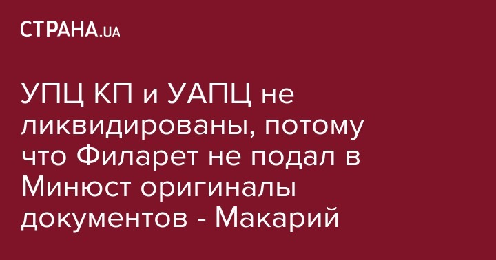 УПЦ Киевского патриархата и Украинская автокефальная православная церковь не ликвидированы из государственного реестра, поскольку патриарх Филарет не отдавал оригиналов документов, необходимых для этого.