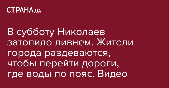 В субботу Николаев затопило ливнем. Жители города раздеваются, чтобы перейти дороги, где воды по пояс. Видео