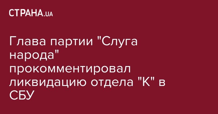 Глава партии "Слуга народа" прокомментировал ликвидацию отдела "К" в СБУ