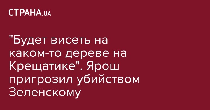 "Зеленский в своей инаугурационной речи говорил, что готов потерять рейтинги, популярность, должность... Нет, он потеряет жизнь. Будет висеть на каком-то дереве на Крещатике – если предаст Украину и тех людей, которые на Революции и Войне погибли. И очень важно, чтобы он это понимал", - заявил Ярош.