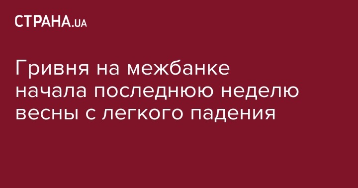 Текущая неделя в Украине началась с падения курса гривны. Так, в понедельник, 27 мая, на межбанке курс национальной валюты снизился до 26,345 грн/$1 с 26,32 грн/$1 в предыдущий рабочий день. Об этом со ссылкой на дилеров коммерческих банков пишет "Интерфакс-Украина".