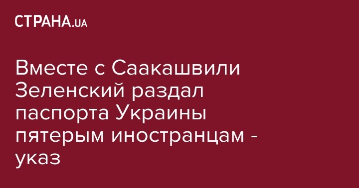 Указом президента Украины Владимира Зеленского, кроме Михаила Саакашвили, украинские паспорта получили еще пять человек, проживающих в стране. Об этом говорится в указе №329/2019 на сайте президента.