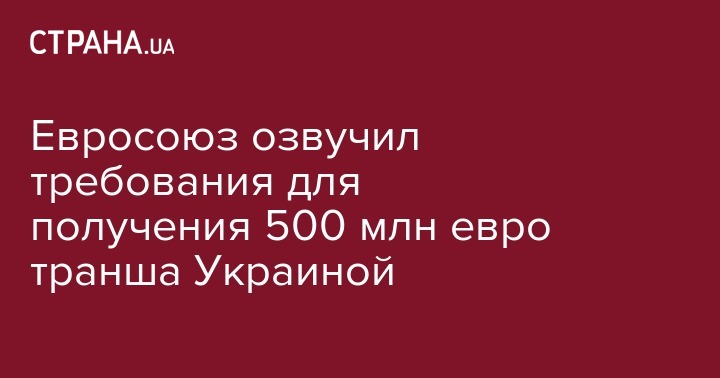 "В этот раз для получения следующего транша была определена необходимость принятия закона, который касается борьбы с отмыванием средств, и закона, который касается автоматизированных экономических операторов. Еще одно условие - функционирование системы автоматической проверки электронных деклараций, принятие среднесрочного плана реформирования Таможенной и Налоговой служб и выполнение закона о рынке электрической энергии",- сказал он.