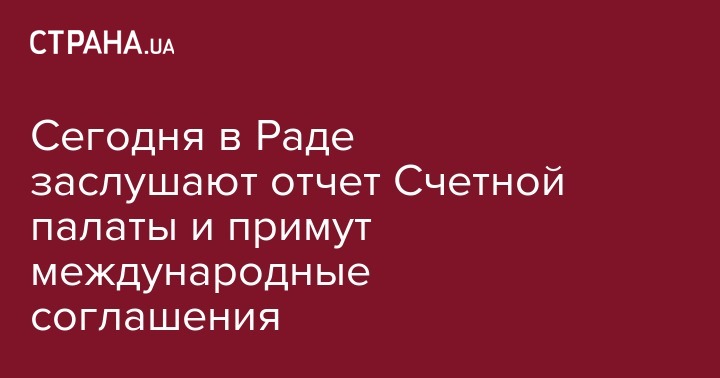 Сегодня в Раде заслушают отчет Счетной палаты и примут международные соглашения