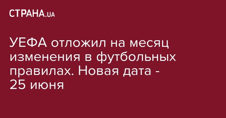 В УЕФА решили почти на месяц перенести введение в действие изменений в правила футбольных матчей. Теперь новые правила вступят в силу с 25 июня, вместо предполагавшейся даты 1 июня. Об этом, 29 мая, сообщила пресс-служба УЕФА, как передает ТАСС.