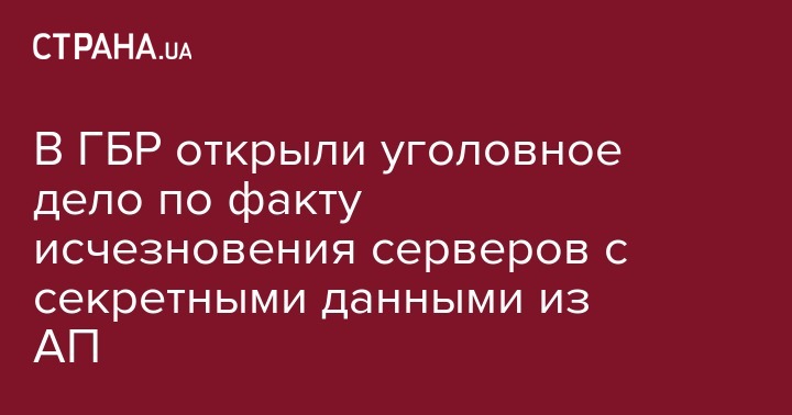 Государственное бюро расследований (ГБР) открыло уголовное производство по факту исчезновения мониторов и серверов с секретной информацией из ситуационной комнаты Администрации президента. Об этом говорится в сообщении пресс-службы ГБР.