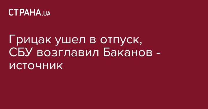 "С понедельника Грицак находится в отпуске. Временно исполняющий обязанности главы СБУ - Баканов", - сказали в СБУ в среду.