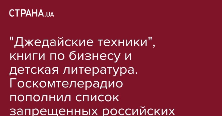 "Подобные примеры "жизнь-подвиг" приводит в своей книге "Бизнес – это психология" и Марина Мелия. Не предоставлено также разрешение на ввоз русских переводов книг Фрэнсиса Рэймонда "История бизнеса. День за днем" и Джолайн Годфри "Как научить ребенка общаться с деньгами", поскольку издатель использовал в оформлении изданий символику государства-агрессора", - сообщает пресс-служба Госкомтелерадио.