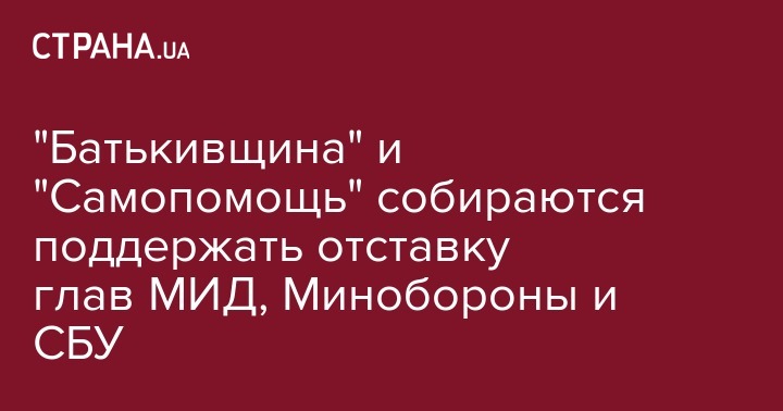 Парламентские фракции "Самопомощь" и "Батькивщина" намерены поддержать представления президента Украины Владимира Зеленского об отставке министров иностранных дел и обороны, а также главы СБУ. Об этом сообщает "Интерфакс-Украина".