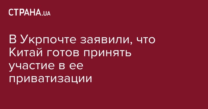 Крупные китайские компании готовы заходить и даже участвовать в возможной приватизации "Укрпошты". Об этом сообщил руководитель госпредприятия Игорь Смелянский на своей странице в Facebook.