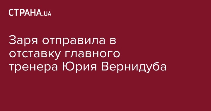 "Сегодня утром состоялся разговор президента футбольного клуба Заря Евгения Геллера и главного тренера команды Юрия Вернидуба. По итогам разговора было принято решение о взаимном расторжении контракта футбольного клуба Заря с Юрием Вернидубом. Юрий Николаевич покидает пост главного тренера Зари.